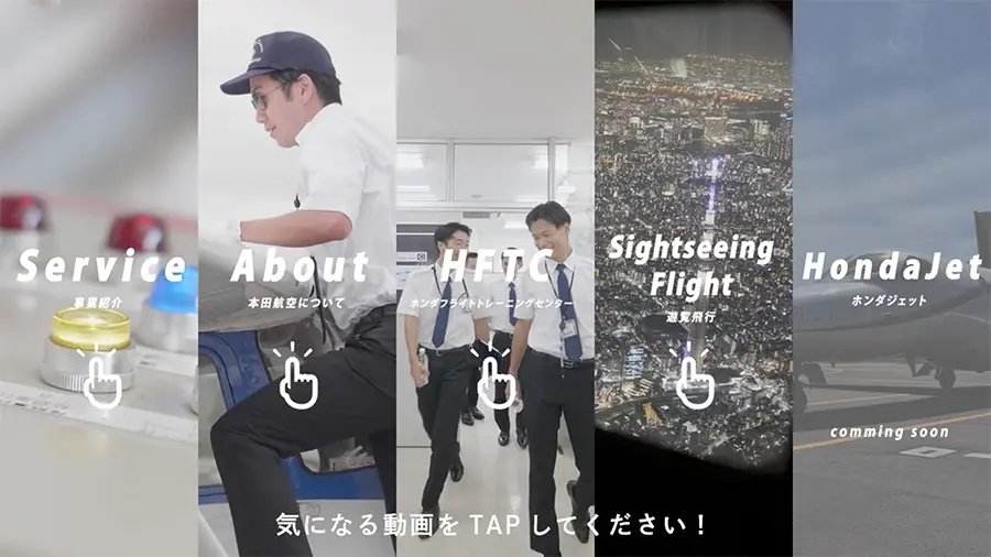 空運業を展開する本田航空様は、事業内容やスクールの魅力を一括で伝えられる映像を求め、インタラクティブ動画の制作を依頼されました。